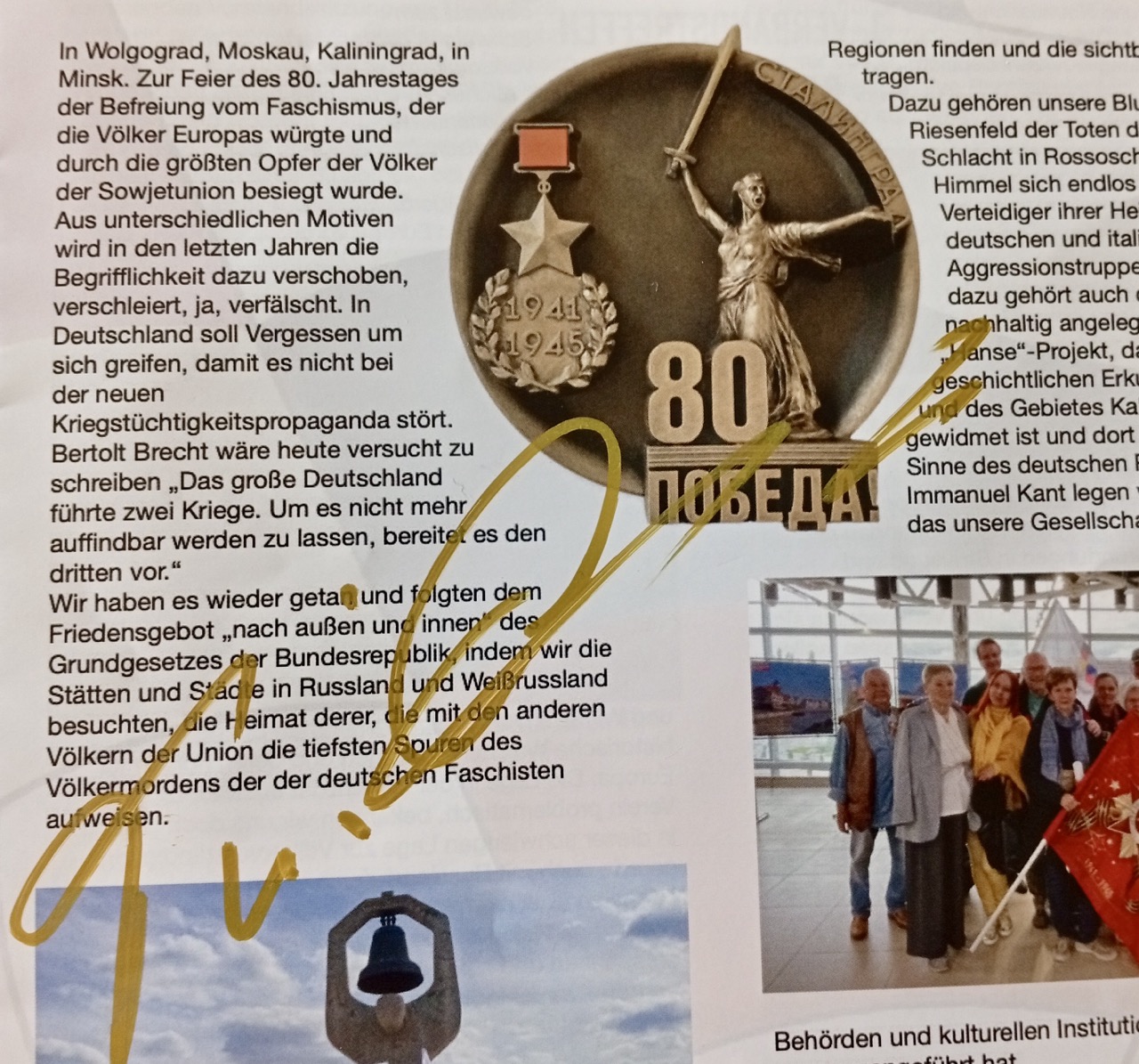 Nicht nur nebenbei sei gesagt, dass der antifaschistische Kämpfer in den Gräben von Stalingrad und spätere erste Präsident der Deutschen Demokratischen Republik, in Guben geboren, dessen 65. Todestag wir im September gedachten, zu den deutschen Politikern gehört, der ein Leben lang für ein friedliches Zusammenleben Deutschlands mit seinen Nachbarn eintrat: Friedensgrenze. Nicht Oder-Neiße-Linie, wie es jahrzehntelang vom Rhein herübertönte.