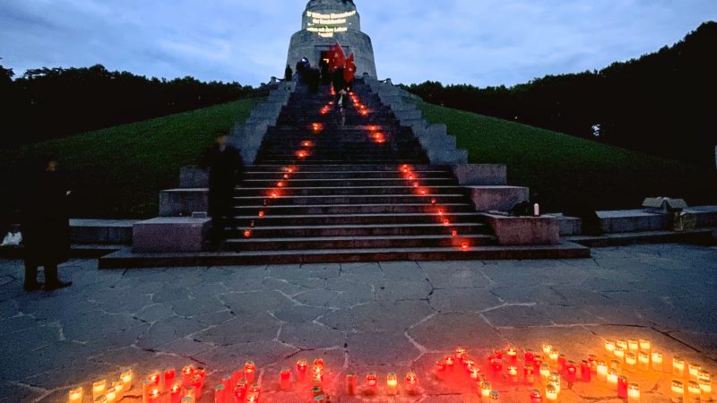 4:00 – 5:00 1 Stunde VereinVerein Treptower Park EhrenmalBerlin, Veranstaltungsort anschauenKarte Treptower Park Ehrenmal wir erinnern an den Überfall Nazi-Deutschlands auf die Sowjetunion mit einer Lichtinstallation mit Kerzen Treptower Park EhrenmalBerlin, Veranstaltungsort anschauen