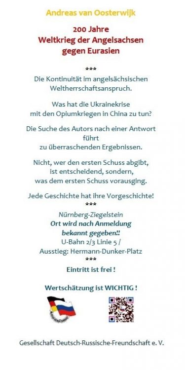 - 13.12.2025, 17:00: 200 Jahre Weltkrieg der Angelsachsen gegen Eurasien 1820-2022
